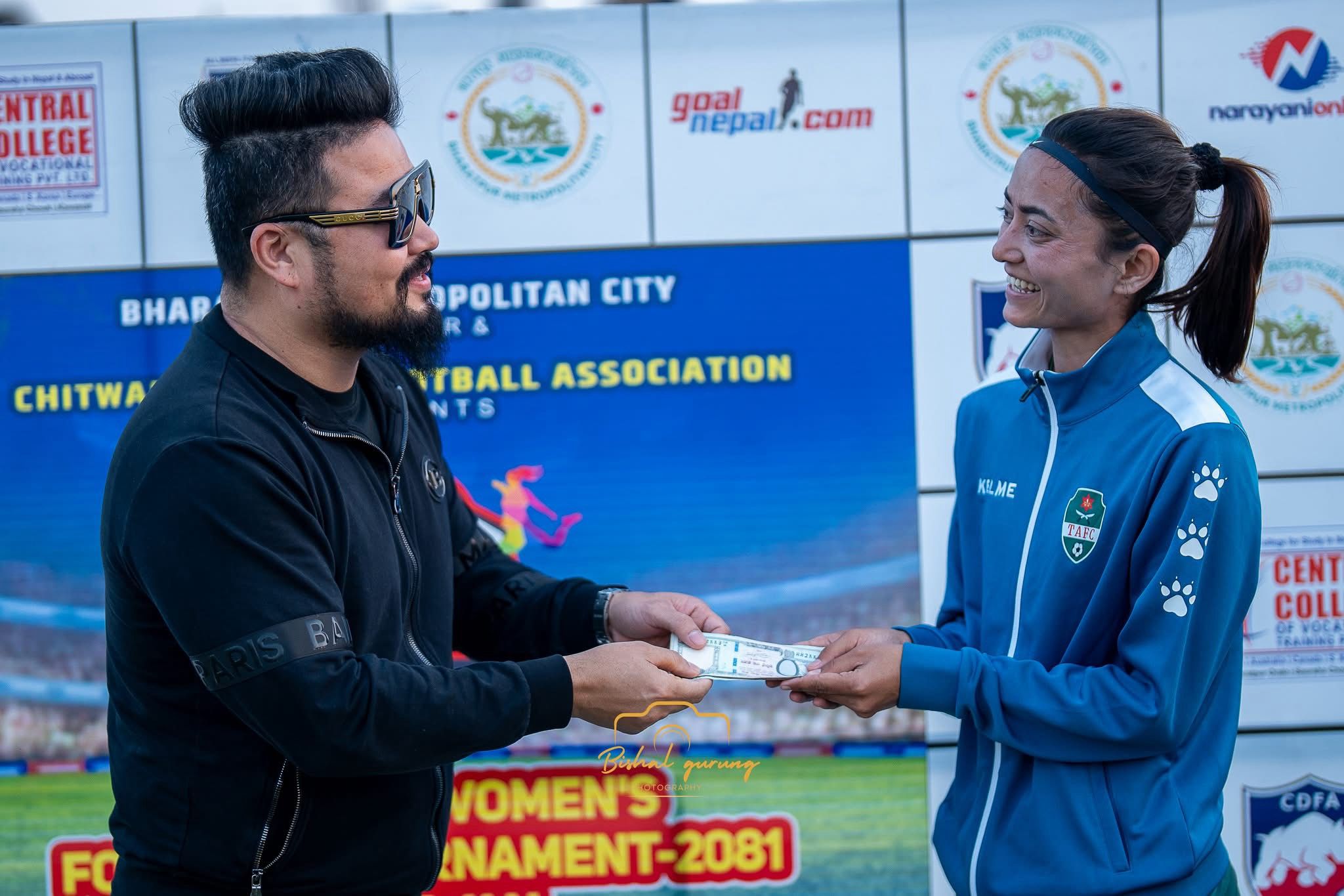 For Rautahat, Piuli Ray scored two and Senu Pariyar scored one goal. Chandra of the Army, who scored four goals, was named the Player of the Match. She received 10,000.